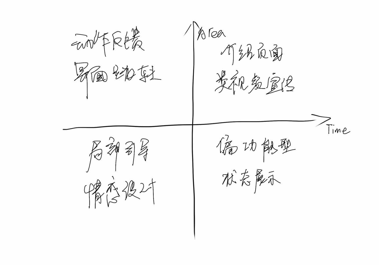 另外,我们在制作不同场景的动效时,也是需要考虑元素面积大小和运动时间的关系,可以参考下图进行安排。