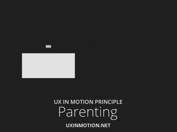 在用户进行操作时,有父子关系的元素帮助用户更好地理解它们之间的层级关系以及带来更加有理可循的操作反馈。正如上面给出的这张动图,位于下方的方块的左右运动,而位于上方的方块跟随下方方块进行左右运动并同时进行自己的缩放运动,他们之间构成了父子关系。说得简单一点,父子关系就是子元素的某个属性的值随父元素的某个属性参数的值按照一定的比例进行变化。