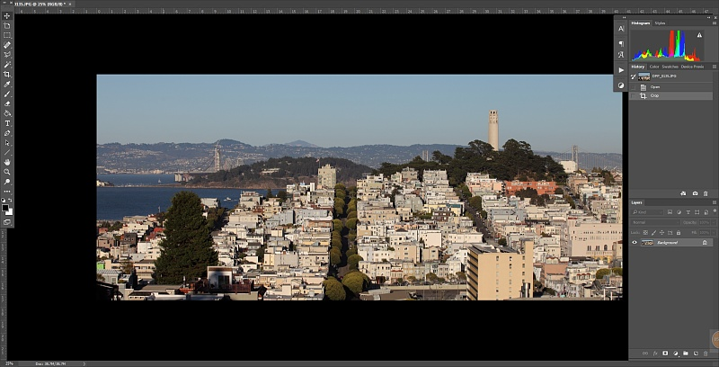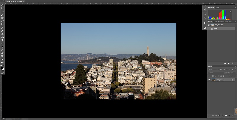 文件安装完毕后,我们就可以打开Photoshop开始调色了。首先打开你想要调色的照片。我挑了一张在旧金山九曲花街拍的照片为例。
