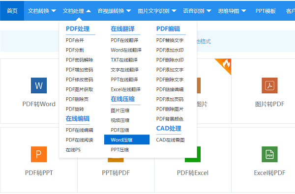 关于对Word文件压缩的解决方法,可通过查找PDF在线工具,接着点击进入相关网页中。在页面中找到【文档处理——Word压缩】功能;