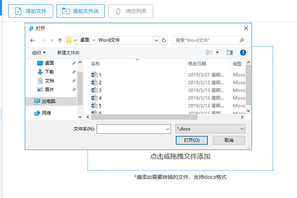 接下来用鼠标点击界面下面的添加文件,在弹出的窗口中找到自己要压缩的Word文件,将文件添加到转换器中;