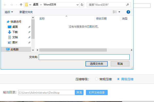 接下来用鼠标点击浏览,在浏览中将会弹出一个窗口,在窗口中点击合适的文件夹,将文件保存在这个文件夹中;也可设置压缩等级;