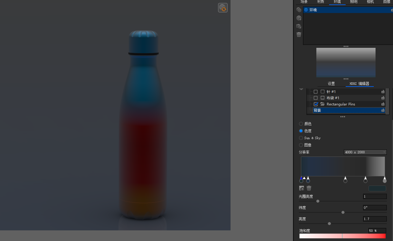 电镀渐变与环境渐变结合,电镀材质保温杯渲染。