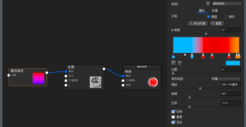 颜色渐变时,根据实物调整即可,,适当调整缩放,位移,角度