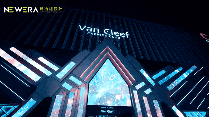 基于品牌历史及当地市场特点的研究之上,新冶组提出了颠覆式的解决方案:彻底摒弃原有的娱乐空间环境,而以“科技时尚为向导、以舞台为执念”的设计概念做出全新定位, 将VAN CLEEF 梵克打造成闽西首家以“赛博朋克”为主题的派对空间,实现品牌、产品、客群体验升级蜕变及市场差异化竞争的目标满足。
