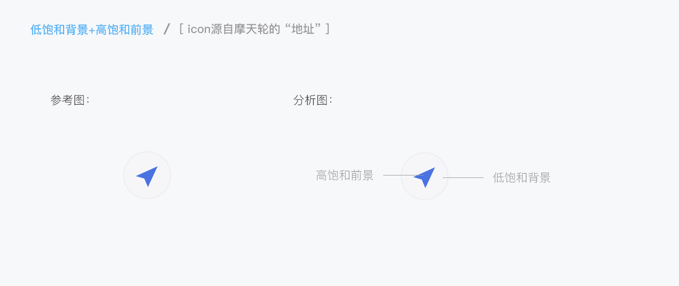 讲解:图标是一个低饱和明度高的背景和一个饱和度高的前景组成。如地址这个图标,同样是蓝色系,只是在饱和度上形成了反差,这样使整个图标不会单调,有光影层次的感觉。