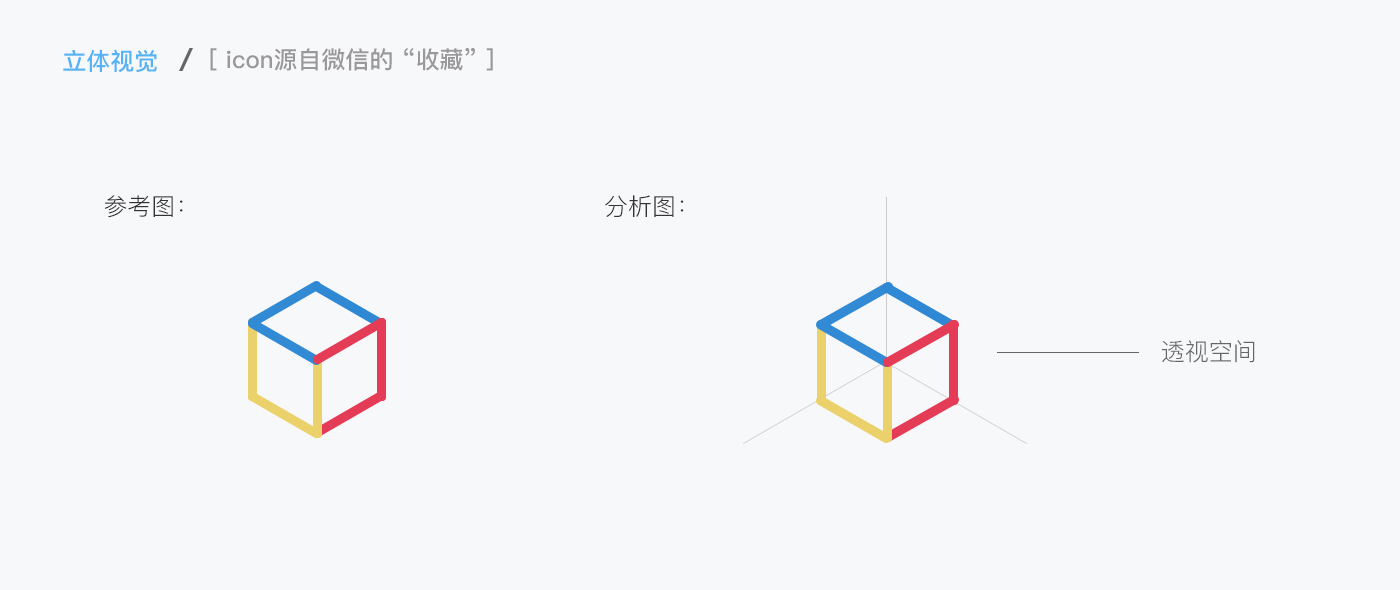 讲解:没有光影,但存在透视关系。就如收藏这个图标,是一个2.5D的结构存在平行透视。
