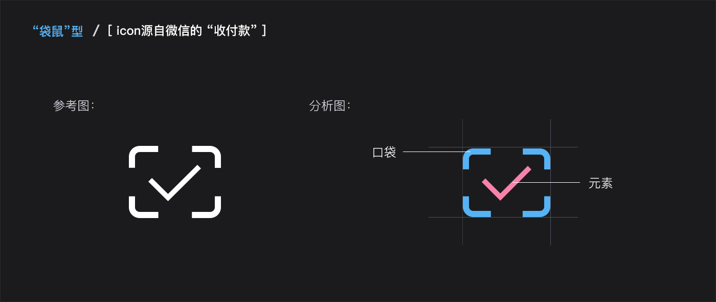 讲解:图标类似袋鼠的口袋一样包裹着一个主体