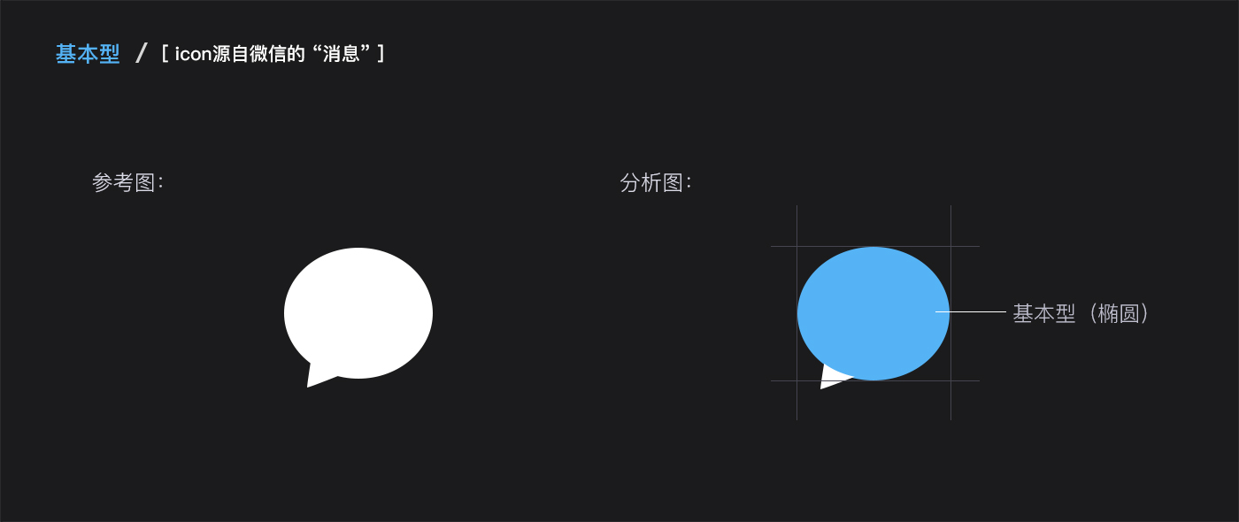 讲解:在基础图形上进行绘制创意。以(微信消息icon)为例子,是以椭圆为基础型,做对话气泡的效果。