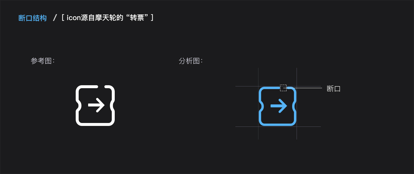 讲解:线性图标出现断口,打破了原本闭合的外框