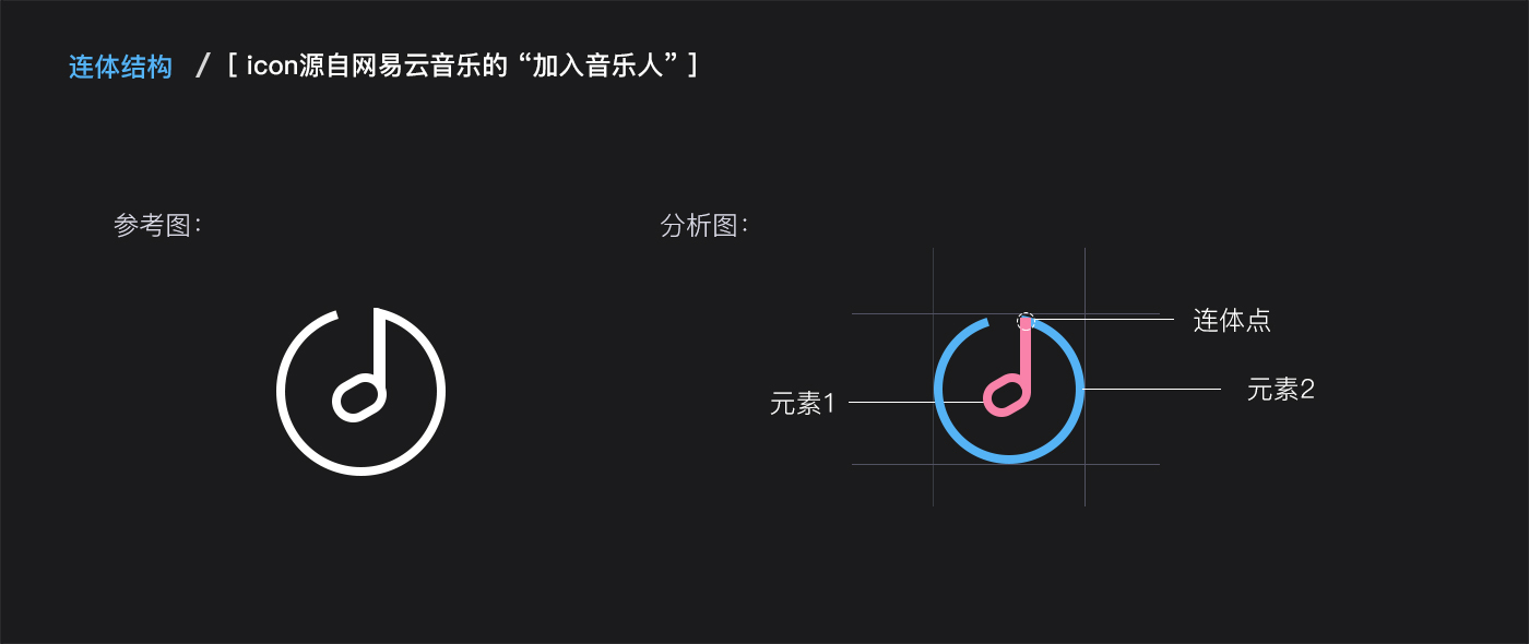 讲解:将常规图标上进行连体,使图标各个线条成为一个整体。如加入音乐人的icon里面的音符和外面的基础型(圆)可以成为一个“袋鼠”型结构,但为了再创意,进行连体,将外圆进行断线将音符连在了一起。