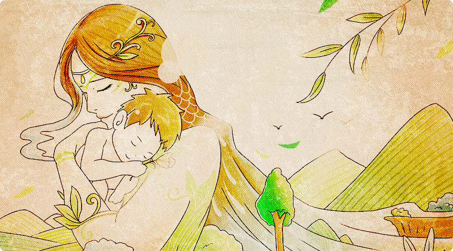上古时期,天地间有一神女,名曰:“女娲”,一日她觉得天地间过于寂静,觉得甚是无趣。走在河边时望见自己的倒影,才发现这个世界是因为少了像自己一样的“人”,所以才过于寂静毫无生气。于是她抟起黄土,照自己的模样捏出人形,而人类也就此诞生·····