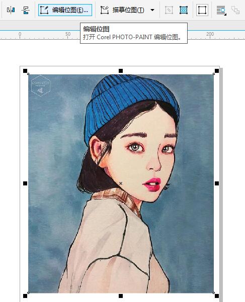 在图片选中的状态下,单击属性栏中的“编辑位图”按钮。