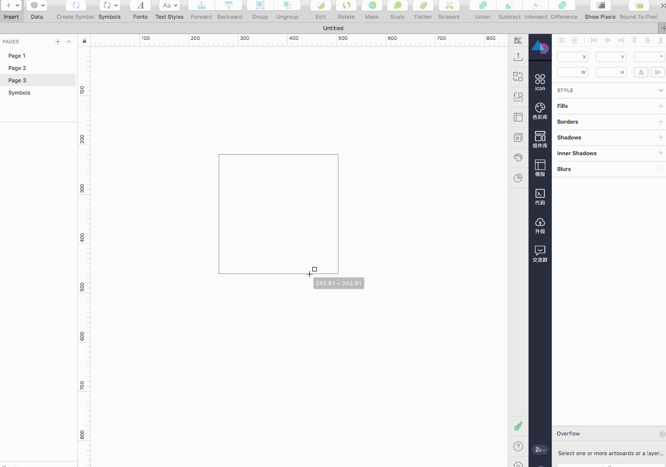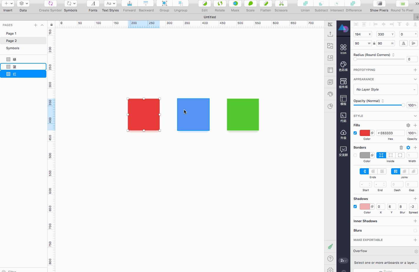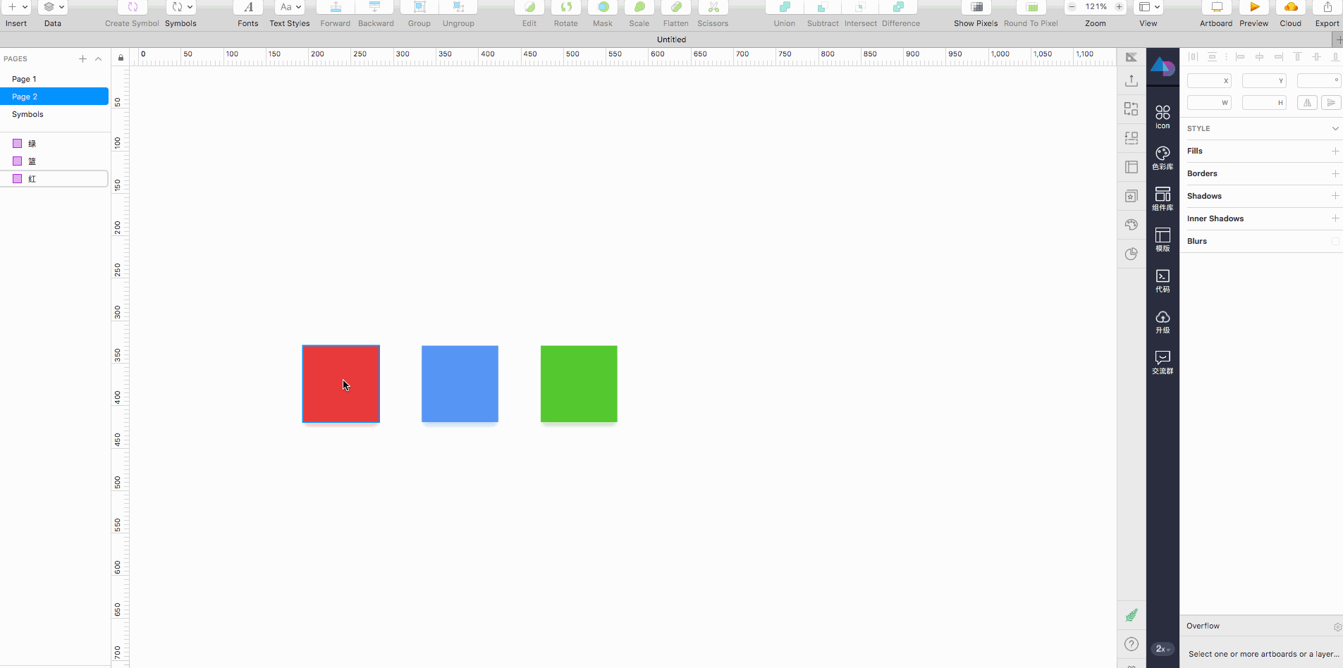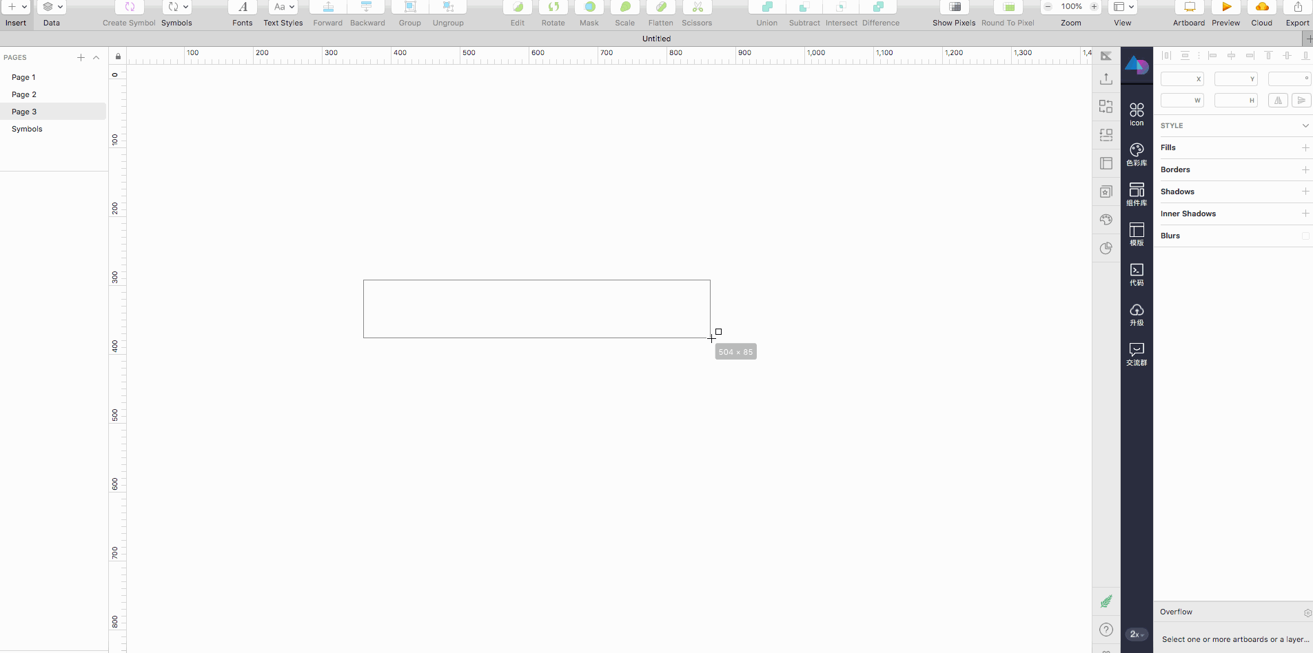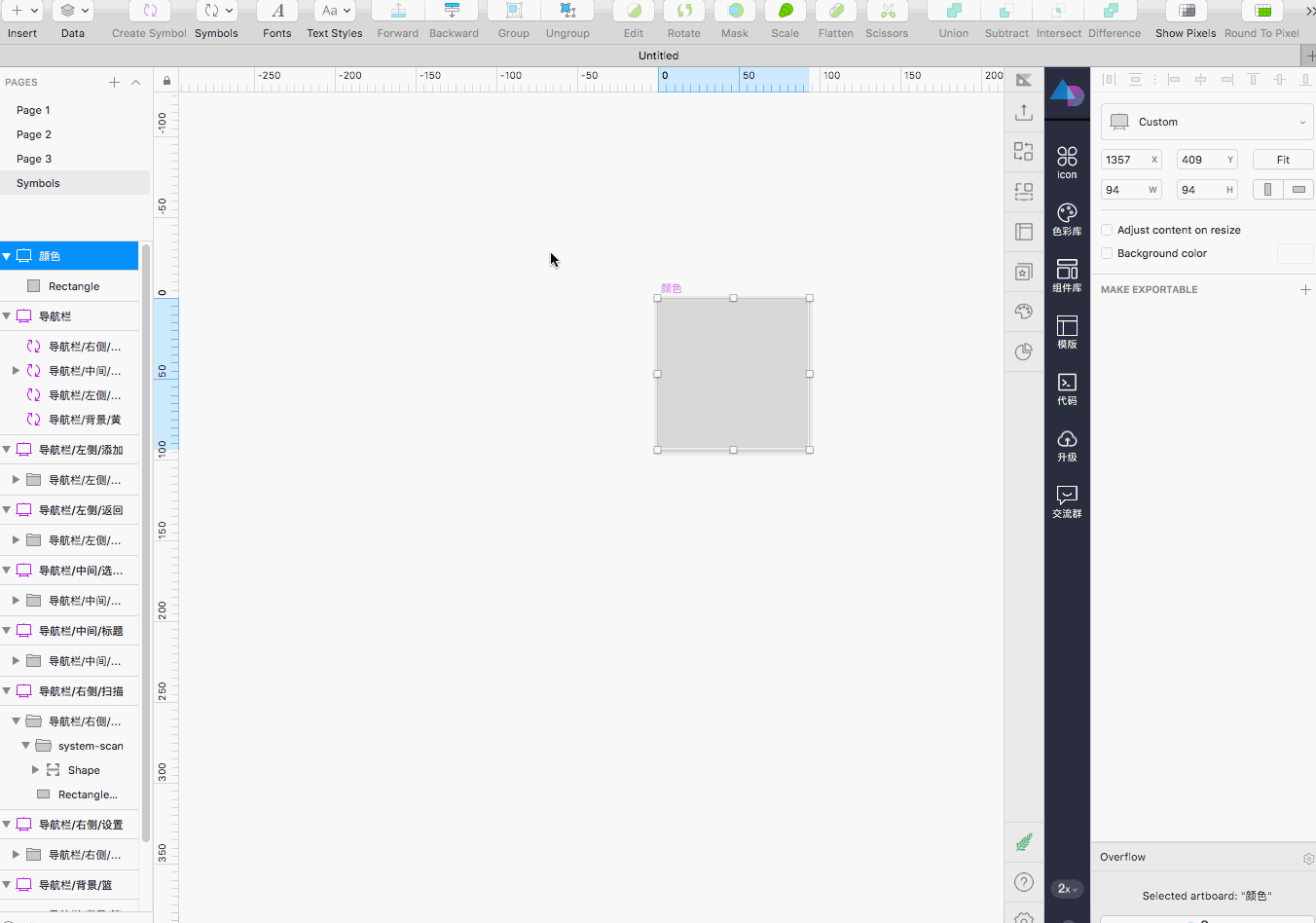 1.在Page页画一个矩形,然后将矩形转化为Symbol,我这里命名为“颜色”