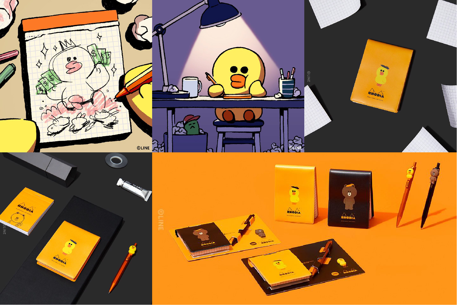 This is collaboration between LINE Friends and french stationary brand Rhodia, which is a especially loved by artists and designers. This is a case that LINE Friends' lovely character image was well applied to Rhodia’s luxury and artistic brand image.