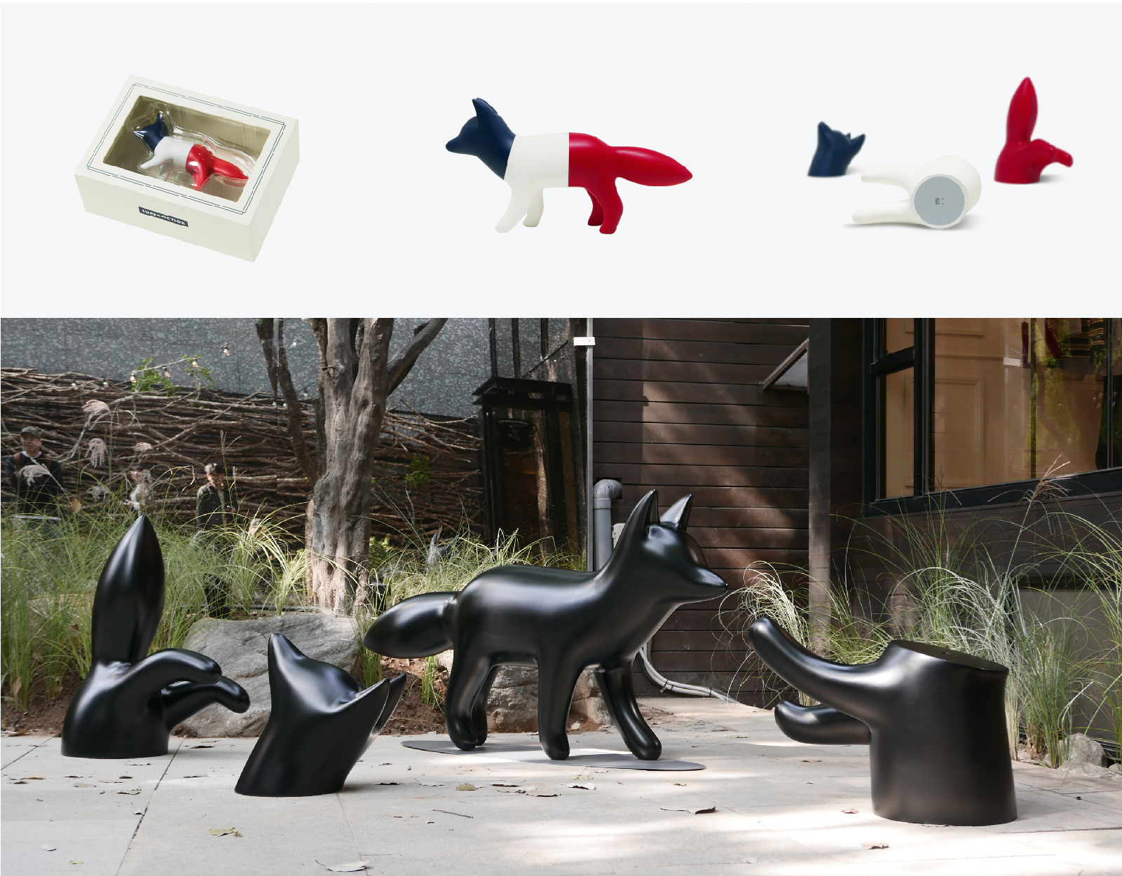This was a collaboration project of Super Fiction and global fashion brand Maison Kitsune. They designed a toy figure reflecting the identity of fox character of Maison Kitsune. In front of the first Maison Kitsune store in Korea, a large sculpture of this fox is being exhibited.