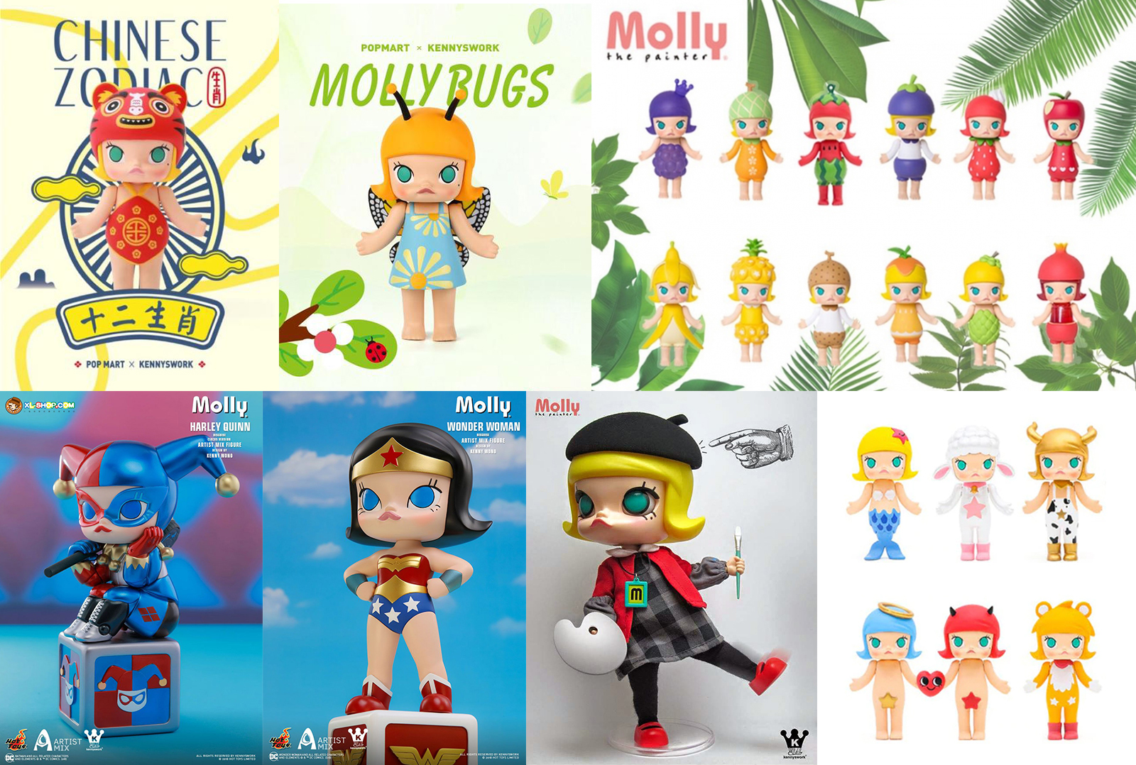 Molly是香港设计师Kenny Wang创作的角色,通过与各种品牌的合作,Molly被制作成玩具人物。这个脾气暴躁、外表可爱的女孩在世界各地有很多粉丝,他们对她的限量版充满狂热。