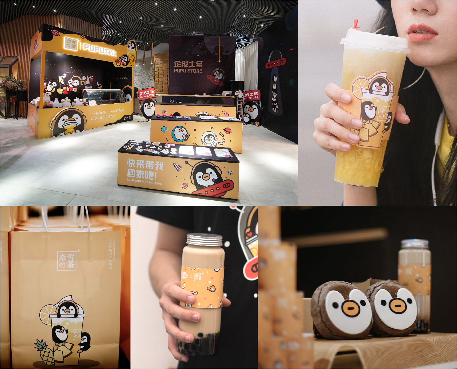 腾讯ISUX设计的新角色PUPU与中国流行的奶茶品牌奈雪的合作,它们在企鹅奇幻之旅的展览中被一同推出,并且正在中国深圳的奈雪店出售。