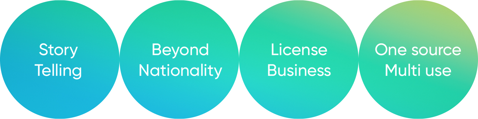 We’ve found there are 4 characteristics of the character market. First, unique storytelling is very important. Second, it is easier to cross borders and be loved than simple consumer goods, so multicultural sensitivity is important. Third, the license business is very important because it accounts for more than 50% of the total sales. Fourth, there are many cases of ‘One source multi use’ that transforms and expands original content into various forms.