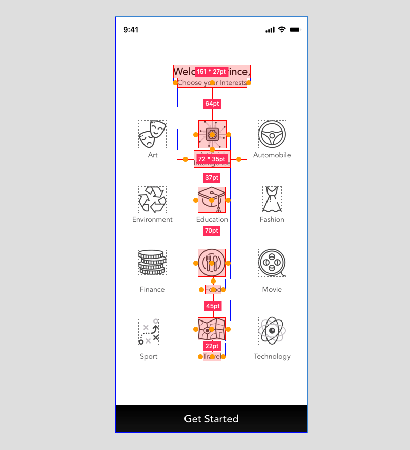 原型中鼠标滑过元素可以智能生成标注,同时支持一键下载切图;