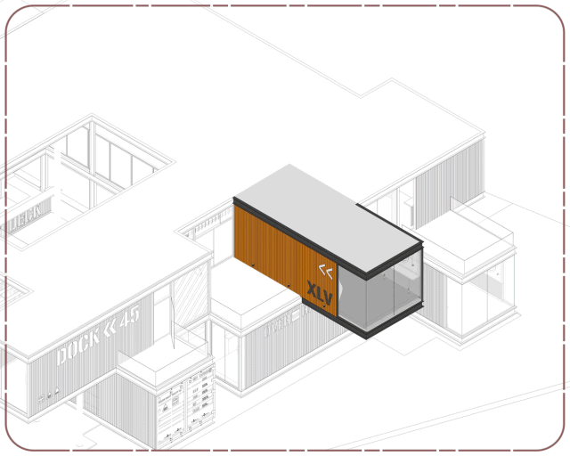 一是集装箱本身的实体属性,辅以大面积玻璃营造的虚空间,表现出逐渐溶解的感觉;