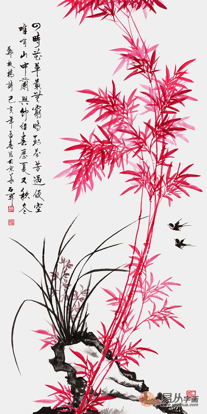 当代的花鸟画家在技法上继承传统,大胆革新,在思想内涵上赋予新的时代精神,以新的花鸟画歌颂和赞美社会主义祖国欣欣向荣、繁花似锦的美好生活。被评为当代画坛最具影响力十大名家之一的石开老师就是写意花鸟画的一个代表画家。
