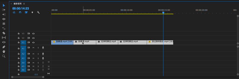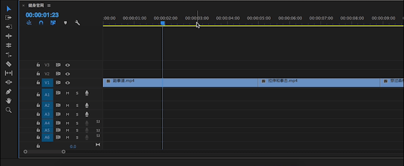 通过上面的方法我们把其它视频放到V1轨道,其实通过标记入点和出点只是一个粗剪辑的过程,视频放到轨道上以后还需要根据自己想要的效果和时长进一步剪辑。