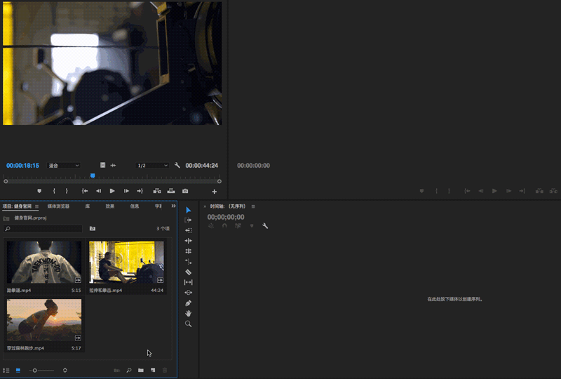 我们在sketch/ps中,将健身官网首屏的信息设计排版好以后(尺寸同样是1280乘720,注意如果文字信息较多,需要加一层半透明黑色/彩色/渐变色蒙版,以保证上方信息的可读性和易读性),合成一个层导出一张png图片,放到Premiere素材区域中,然后拖拽到V2轨道,将该图片的v2轨道时长和下方V1轨道的背景视频总时长一致,在执行上面的导出动作即可。