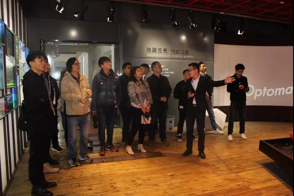 简单参观办公区域以后,商学院创客一行在美景创意副总经理夏令令先生的带领下参观了展厅,激情洋溢的创客们对展厅呈现出的产品工艺和新媒体技术应用充满了浓厚兴趣,对美景创意专业能力表示认可与钦佩。