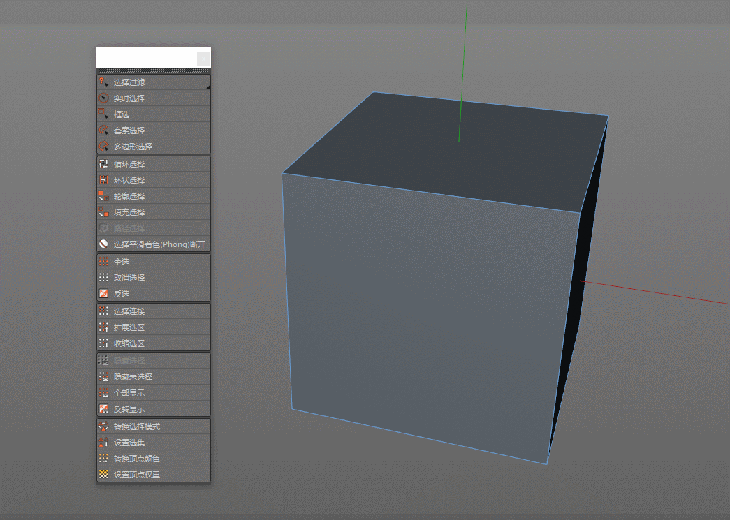 2.能快速多选出,跟预先点击的面相关联那一部分的所有面。(适合复杂建模时使用,使用频次很低)