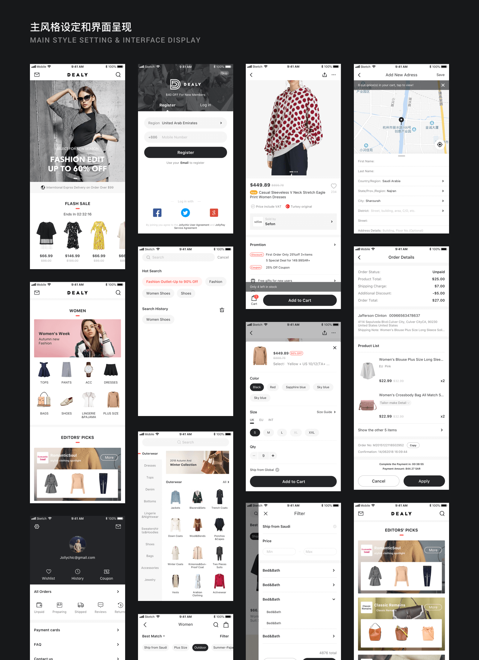 Dealy项目背景:在中东时尚电商市场进行一次更深入的细分,将用户主体圈定在18-35岁女性群体,以年轻,时尚,欧美风格重新打造一个全新APP。产品卖点是以店铺运营为切入点,经营特色店铺以带动用户的关注和购买。