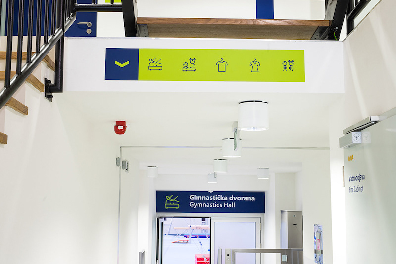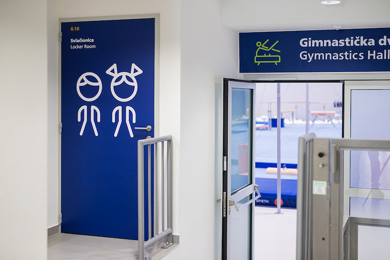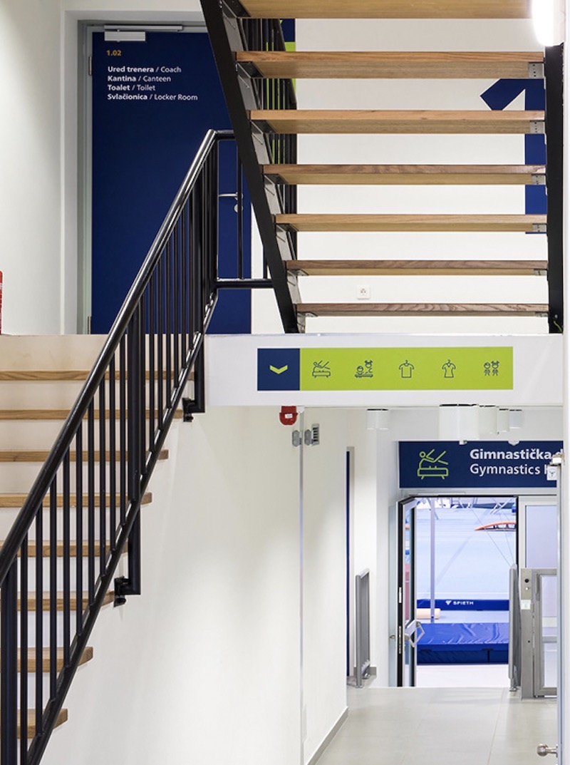 索科尔中心体操馆位于克罗地亚奥西耶克,是一个新的高档体操运动中心,拥有先进、高质量的体育体操训练设备和酒店配套设施。Studio 33受邀为其进行导视系统设计。