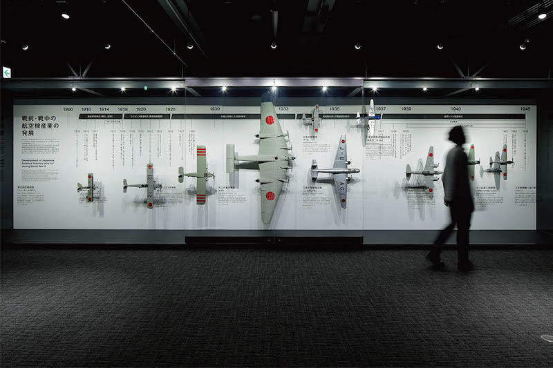 针对各务原市航空宇宙博物馆,uji design设计了较粗的字体,易于辨识,将坚固的铝板作为制作标牌的材料,部分标牌使用蓝色的氧化铝制成,具有科技感。在航空机展示区使用原色铝制介绍面板,并且将飞机机身的纹理也应用于介绍面板上,使其看起来充满了历史感,具有亲和力。