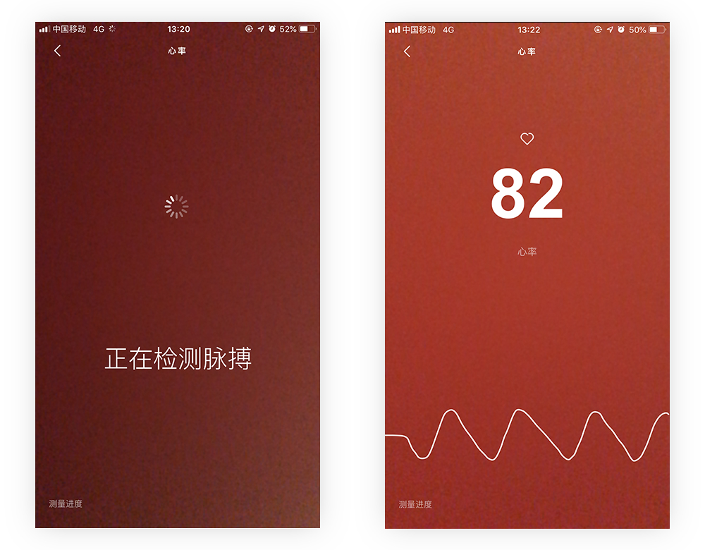 移动硬件本身自带着很多不同的传感器,如光线传感器可自适应调节屏幕亮度,磁场传感器能提供指南针功能等。心率传感器可以是Apple watch具有突破性功能之一,Health Mate通过在手机上结合闪光灯与摄像头记录查看手指血管收缩扩张,从而实现此功能。加班严重和酒场应酬较多的朋友们可以多测试下自身的心率,心率低于100属于正常情况,健壮的人常保持在50-60,高心率就要注意身体健康了。