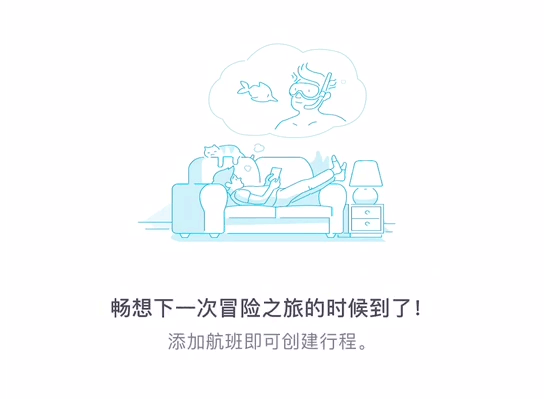 一款app最让人感到有温度的地方常常是一句文案,一句提示,一幅插画。产品在“行程”功能上绘制了一个画面感十足的gif动图,内容是一个人躺在沙发上畅想下一次行程的画面,与用户此时此刻躺在某个地方上使用这款产品形成呼应。