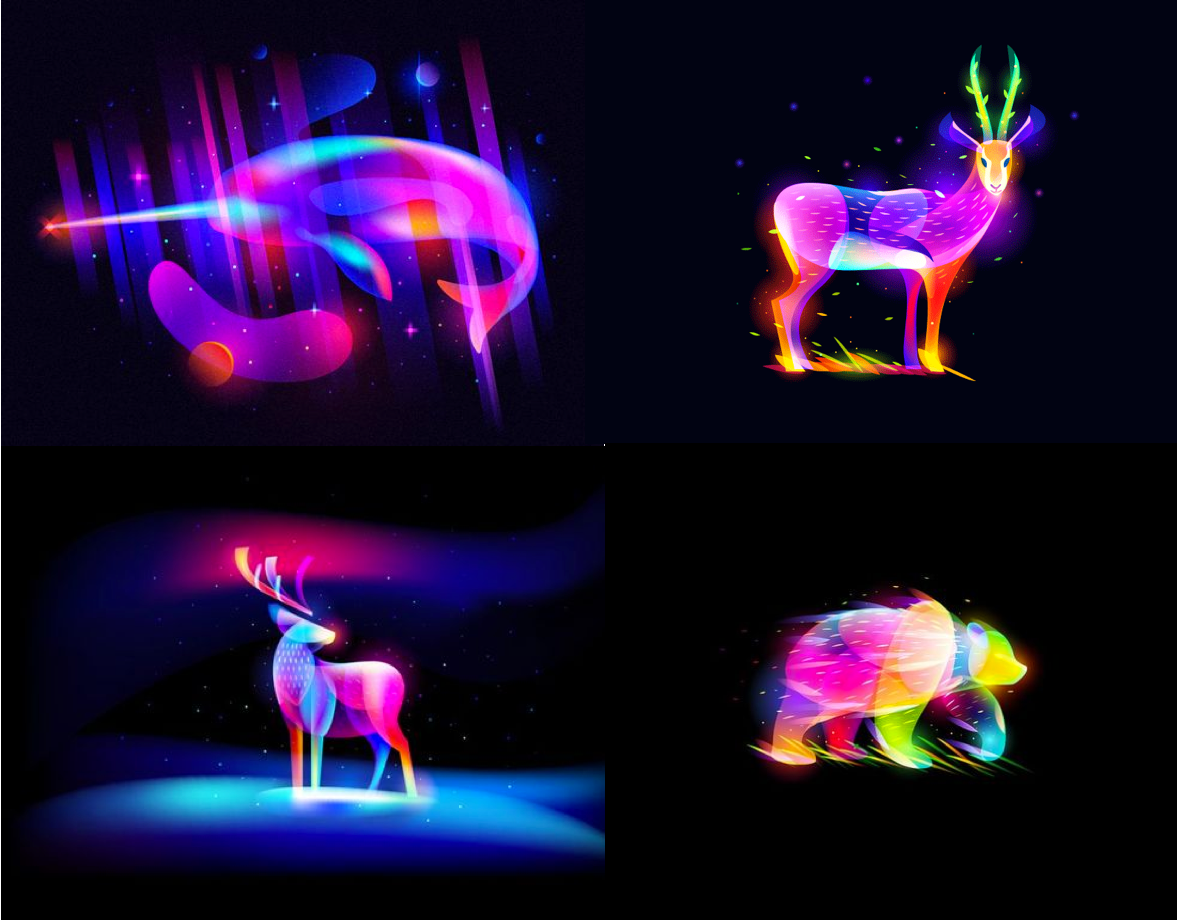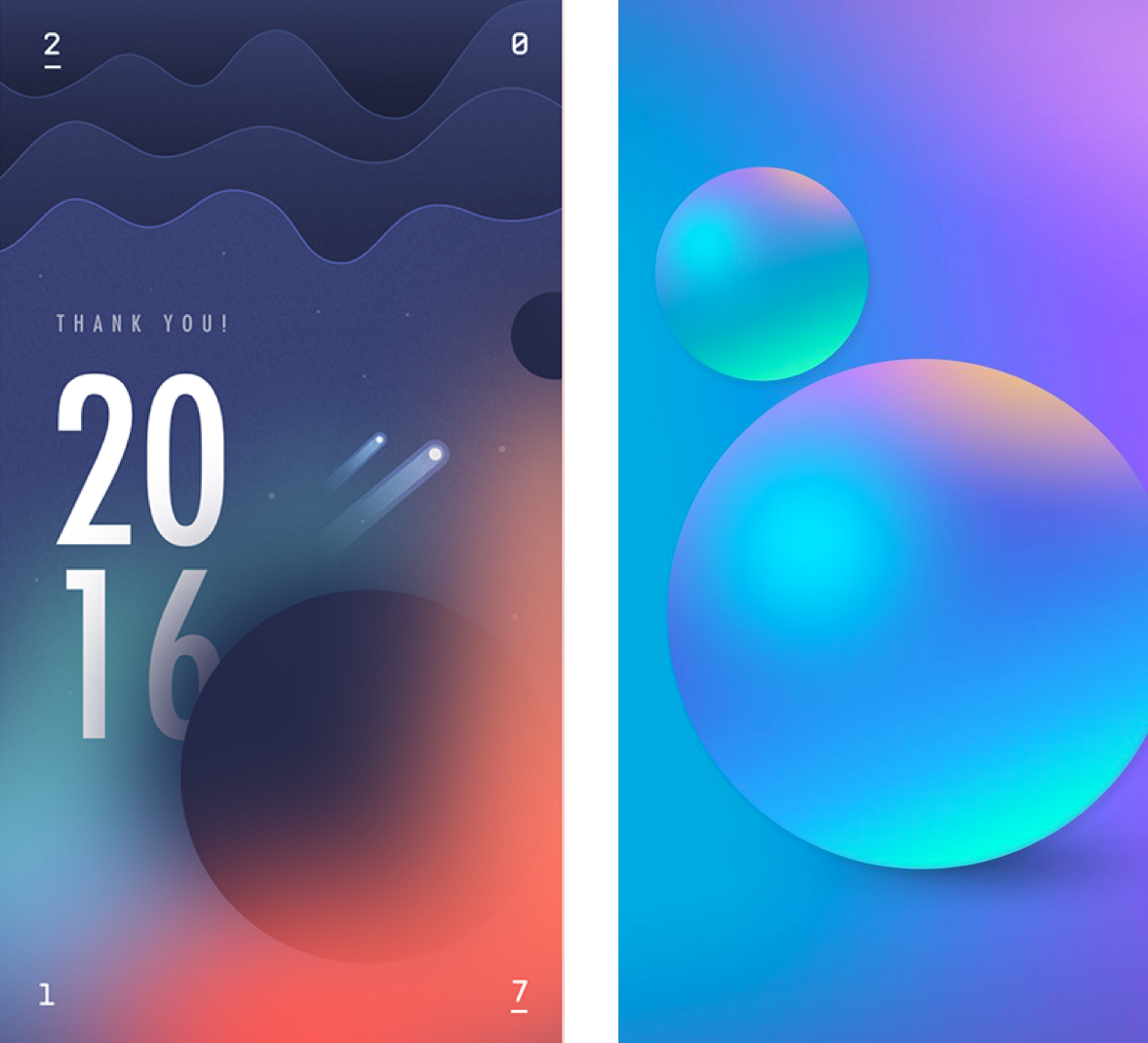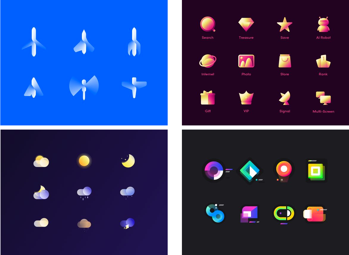 ▲ 光晕重叠,骚气渐变构成了时尚的一组插画设计
