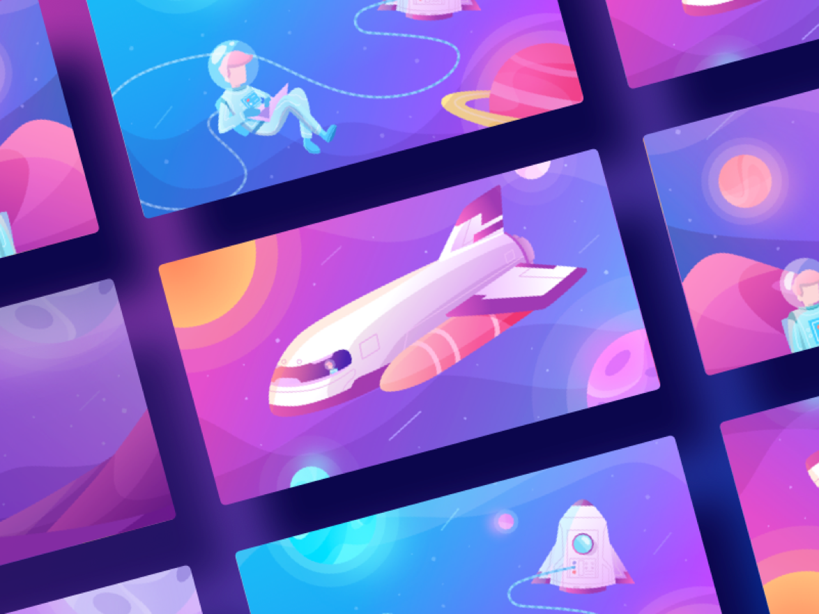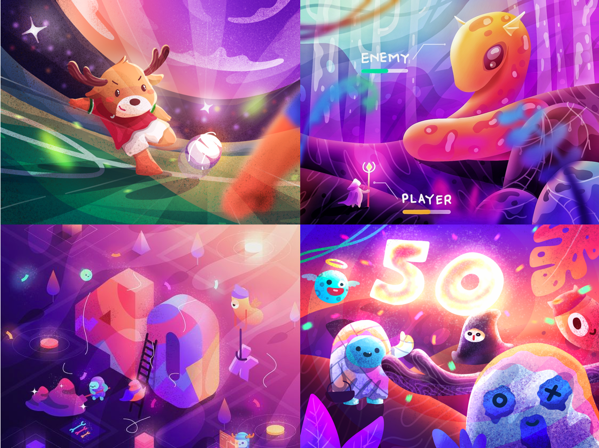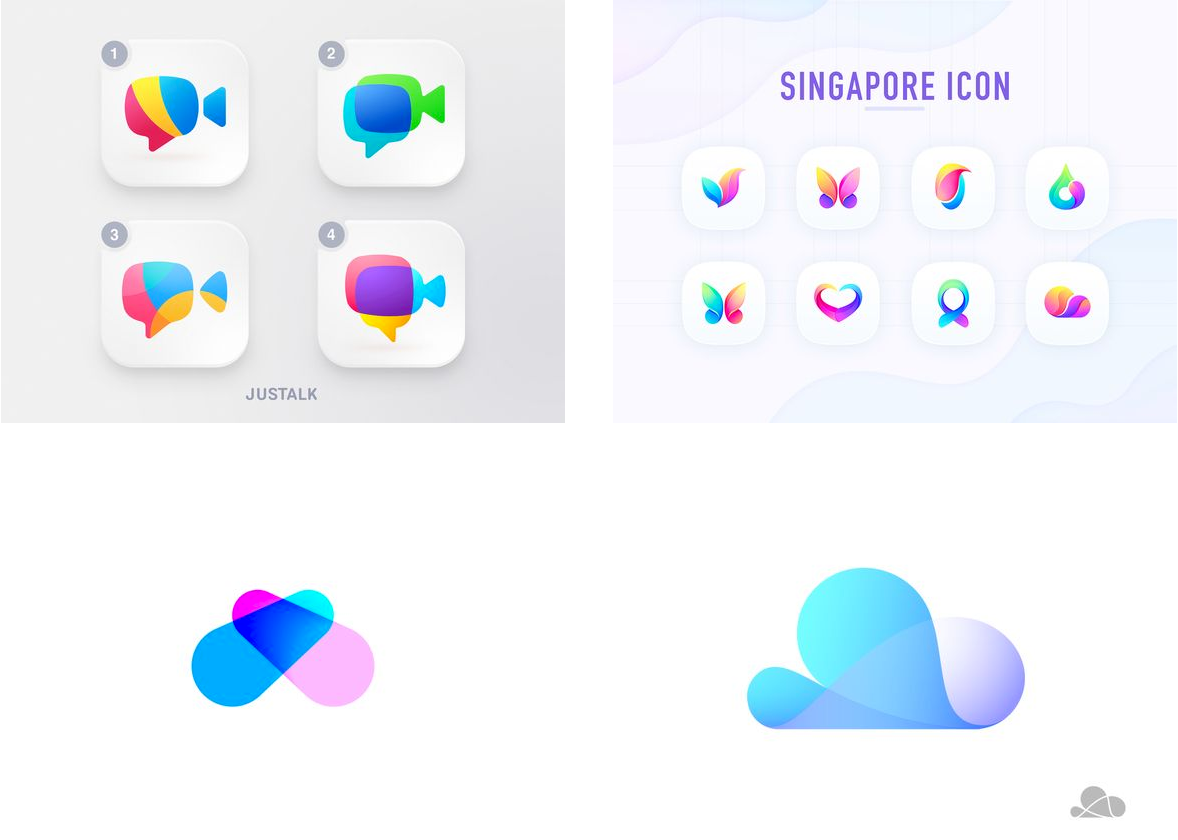 ▲ 光晕重叠,骚气渐变构成了时尚的一组插画设计