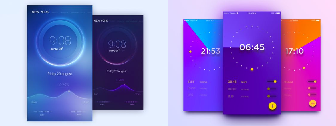 之前有提到,现在很多设计师风格局限,技法同质化,作品集呈现风格雷同,差异性不大!其实UI发展到今天有很多新的风格在出现,只不过我们没有留意到,今天和大家分析的一个就是柔光风格,故名思议,柔光就是整体视觉风格呈现光的折射特征,颜色层次丰富,有明显的光的流动和方向性,在设计手法上常用渐变,光斑,流动,叠加透明等手法,它的整体视觉感受是年轻,流动,潮流,青春活力等视觉感受!是目前比较新的一种设计手法。