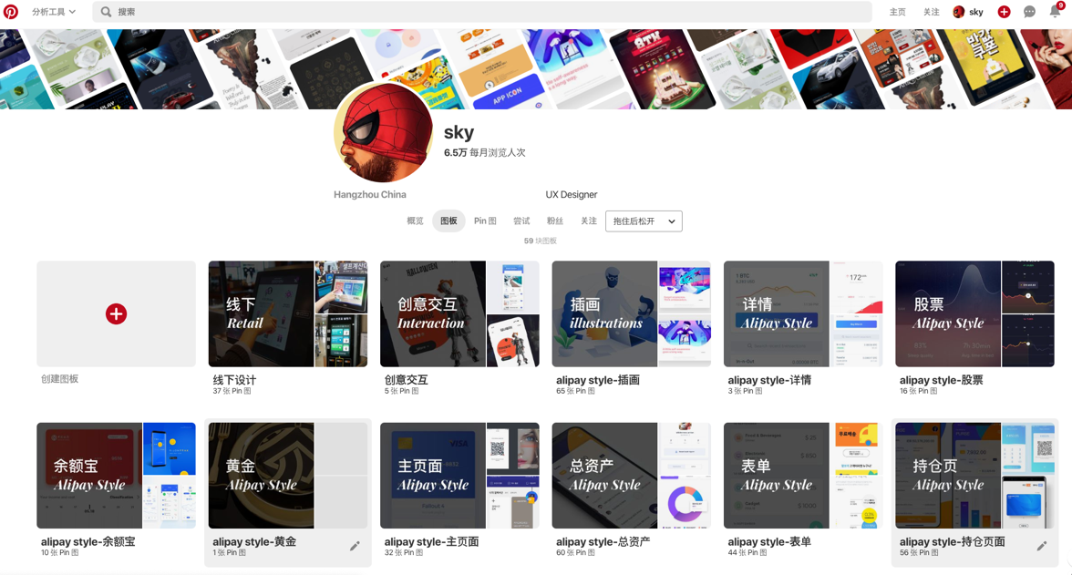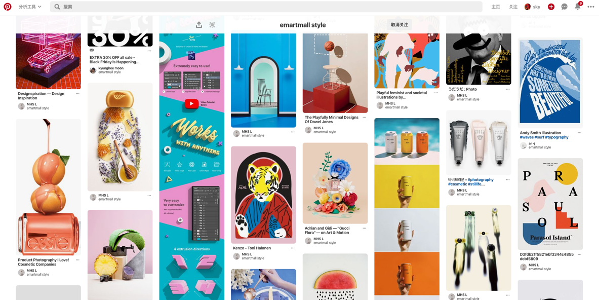 ▲我在pinterest上很喜欢一个叫SSG的团队,在韩国相当于国内的腾讯,阿里,他们有一个团队pin账户,设计师每次发现新的风格都会统一的采集到这个文件夹里面。