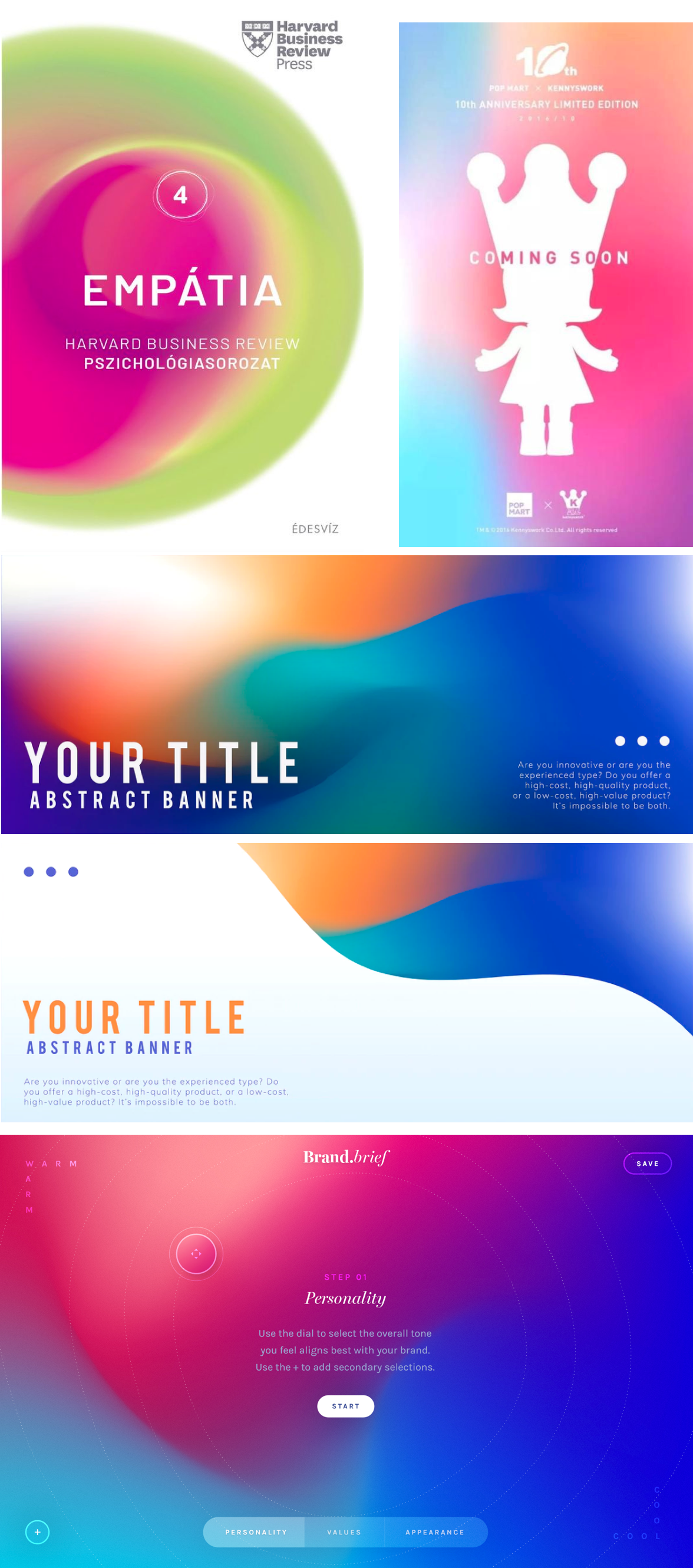 柔光风格很大一个特点就是色彩流动感,背景上一般采用多色融合,色彩里面有层次,有流动液体变化,有深浅过度,而不是简单一个渐变,这种色彩光感更像我们生活中自然光,它是丰富多彩。