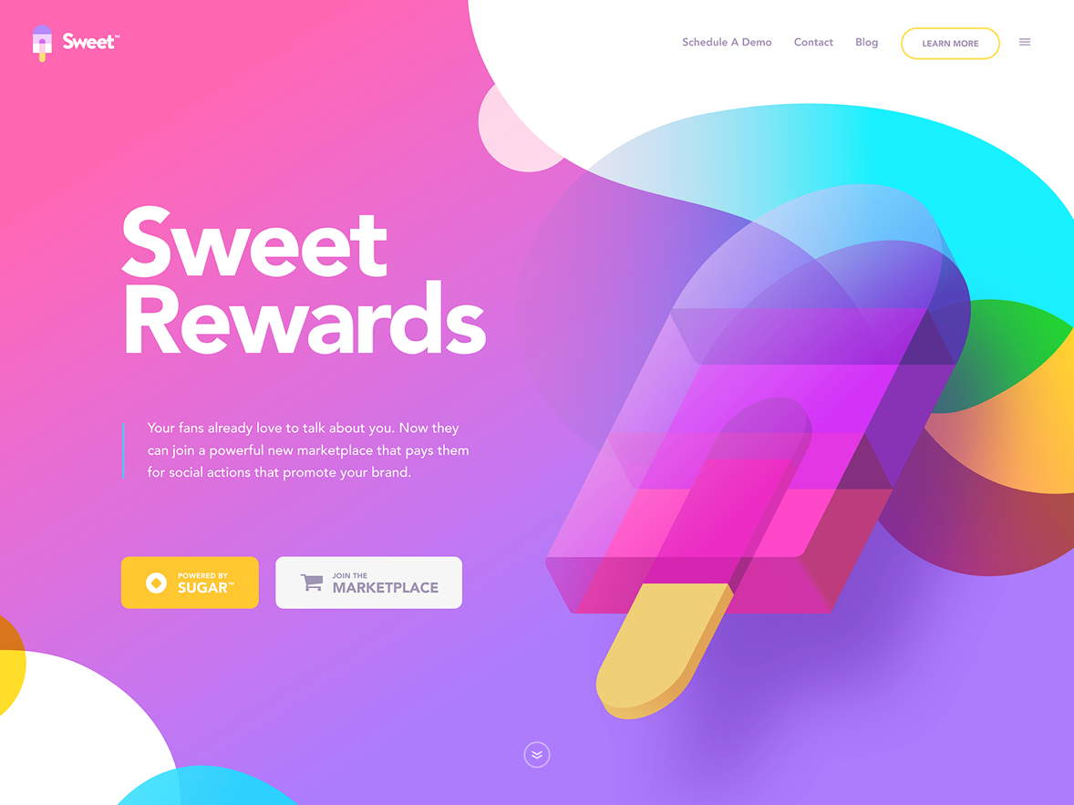▲ sweet官网设计,充满了甜蜜的味道,特别是冰棒的设计,通透有质感,色彩丰富。