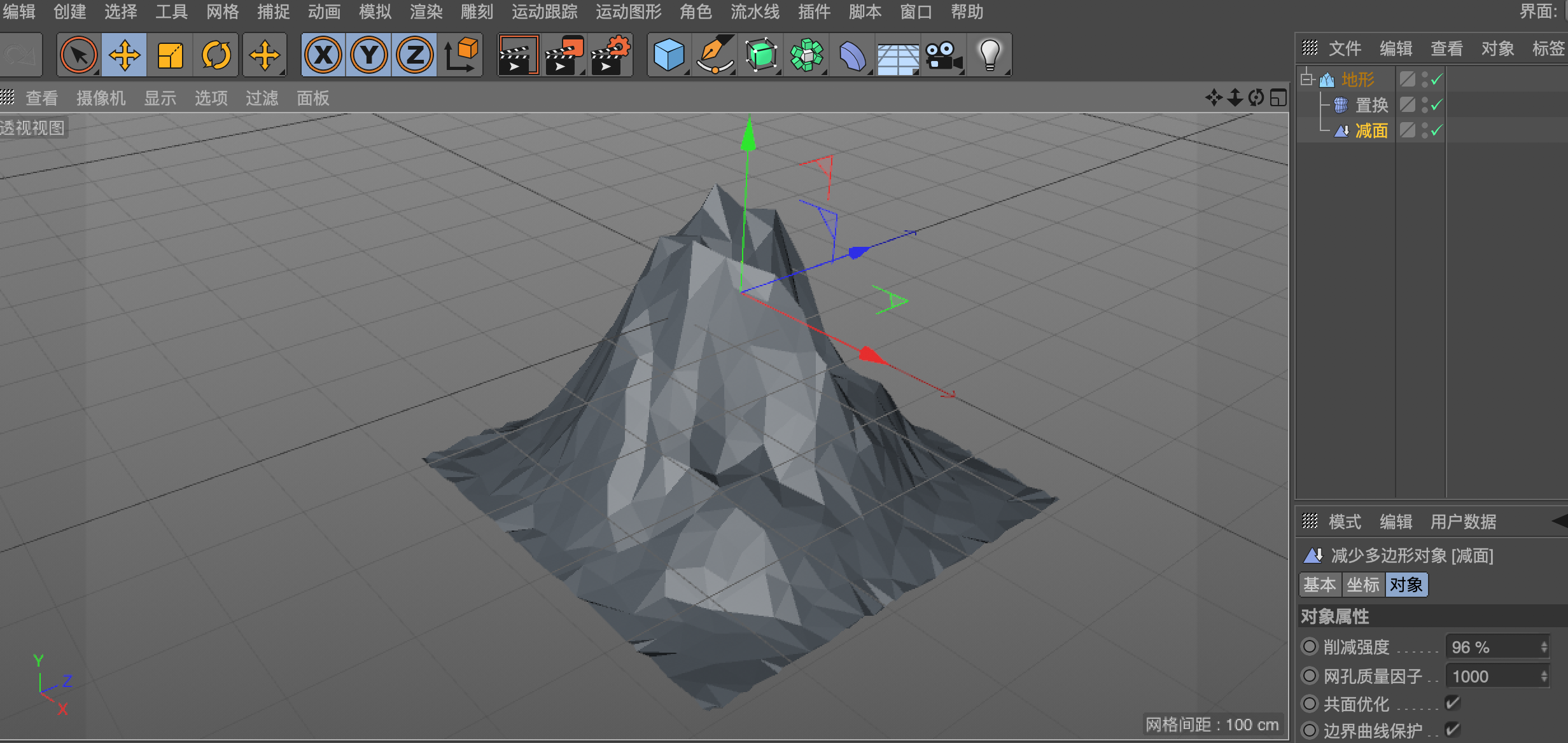 (3)给物体添加 “减面”,属性 - 对象 - 削减强度(改变面的数量与大小)