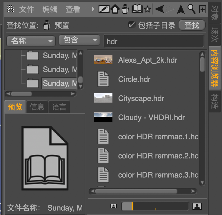 窗口菜单 - 内容浏览器 - 点击查找图标 - 输入“hdr”搜索查找,将需要的图片拖到材质编辑器中 。