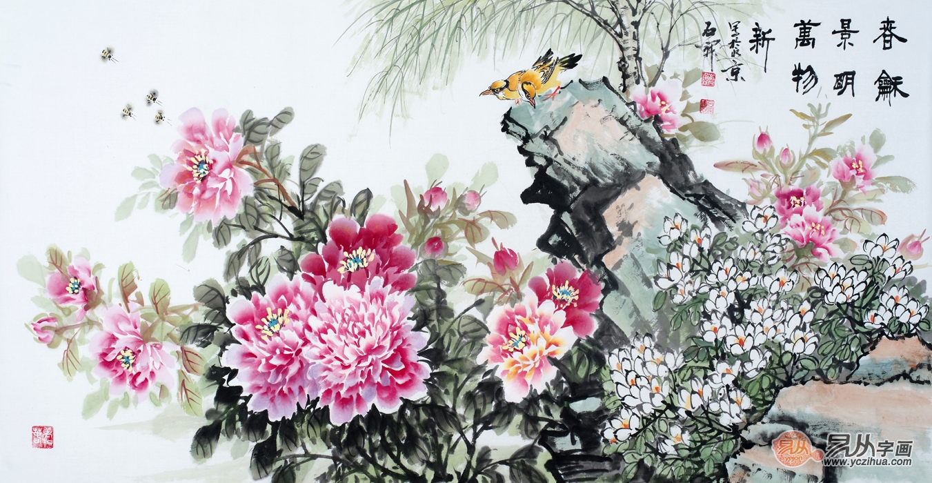 国画牡丹图是国画花鸟画中最为经典的题材,那当代擅长画牡丹的画家都有谁,以下三个画家不能不提:写意牡丹王石开、工笔画牡丹实力画家羽墨、张洪山。