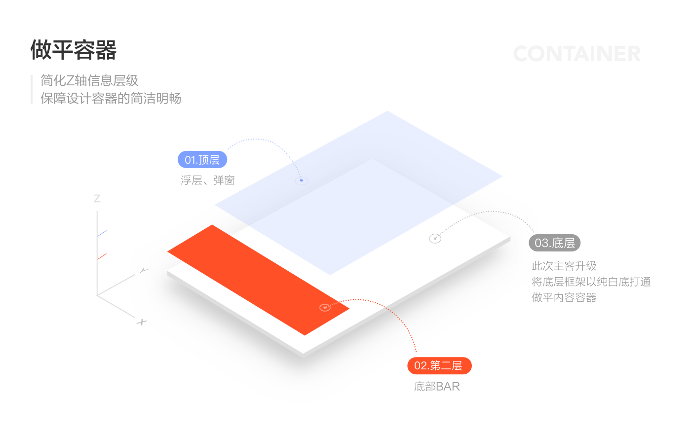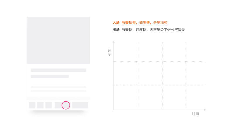 在动效呈现部分,主要以缓入、缓出、缓动结合曲线来调节,总的来说,内容入场时节奏稍慢,速度缓,分层加载,交代清信息在Z轴上的层次关系,内容出场时节奏快,速度快,内容层级不用再做分层消失。