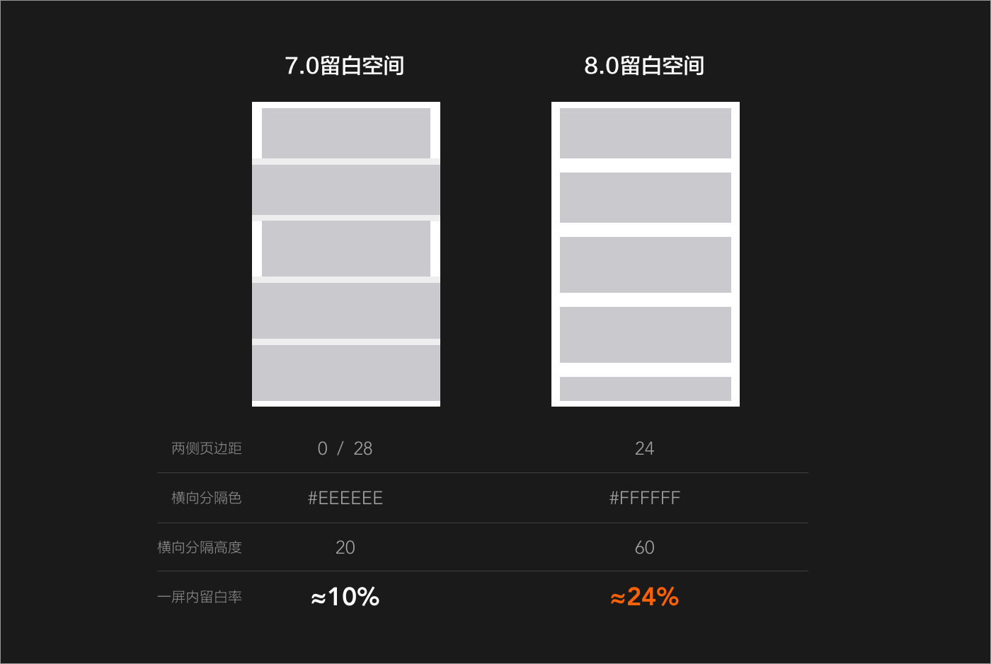 提高留白率,提升页面整体的透气性,为内容留出更清爽、轻松的阅读空间。