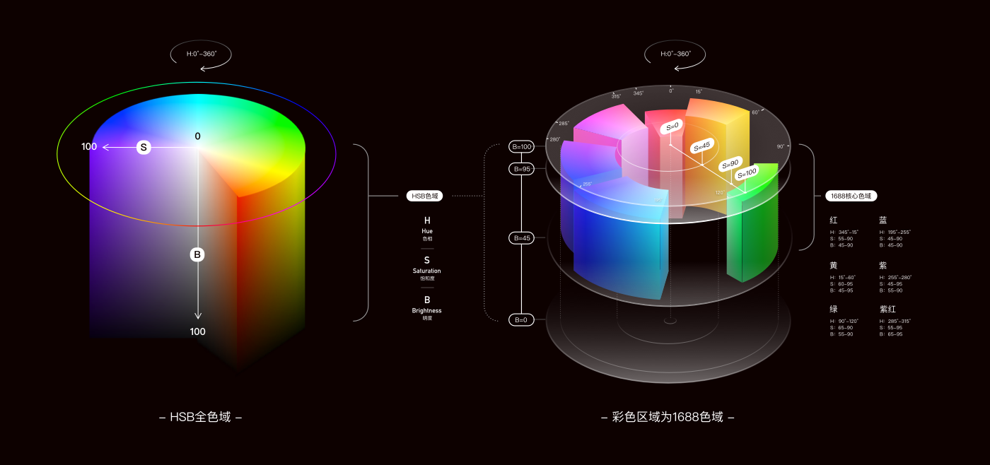 以HSB模式划定出偏沉稳的1688色域,在日常banner及业务场景中可灵活取用。