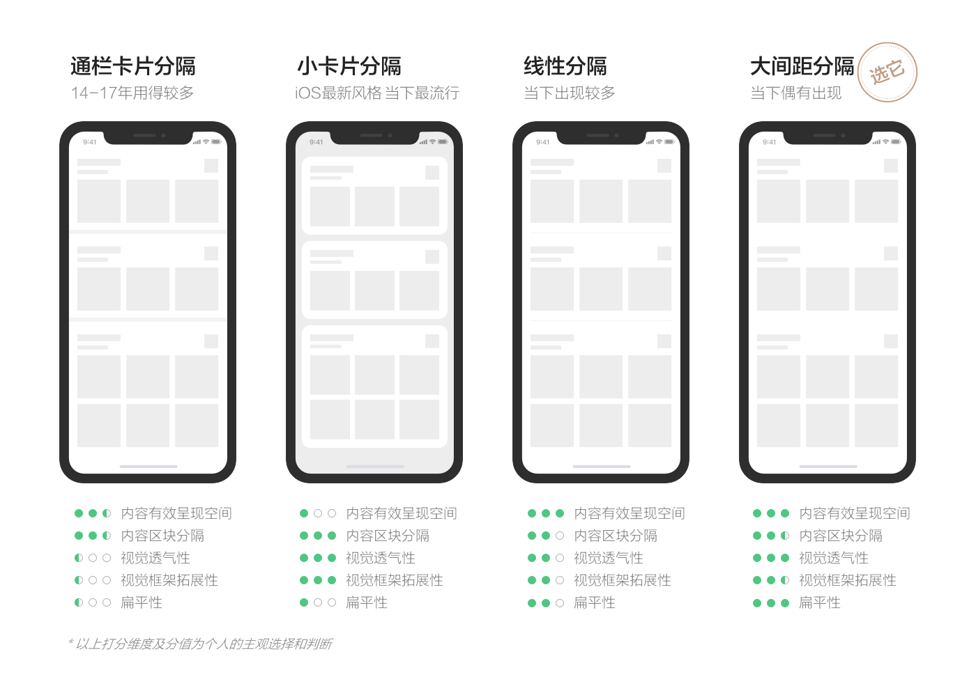 做平视觉框架,选择“大间距分隔”,为内容留出干净、简洁的视觉空间。