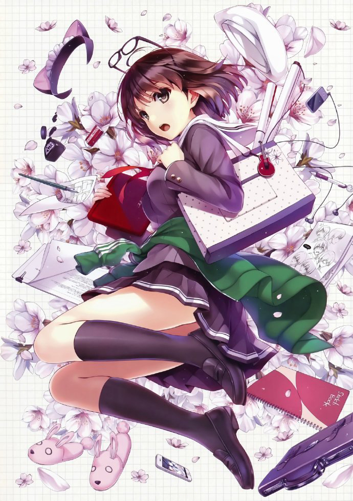深崎暮人在一篇采访中表示他非常喜欢樱花飘落的场景,因为带有很梦幻的feel~所以他会经常画一些带有花瓣的插画,比如下面这两幅!。