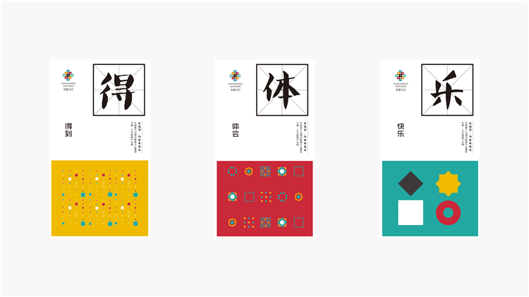 在品牌设计上,我们汲尽九之源、九之涵、方之意、方之形,提取了孔明锁、鲁班锁的榫卯结构造型,寓意启智、开慧、动脑、体验内涵;提取中国结元素,借助超级符号的文化传达;提取魔方的元素,诠释项目沉浸式教育生活的丰富与精彩、创变与未来;提取五行五色,蕴意宇宙万物的发展变化皆在育化之中。